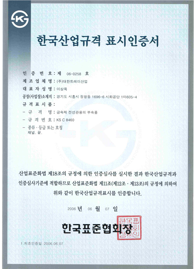 Çѱ¹»ê¾÷±Ô°Ý Ç¥½ÃÀÎÁõ¼