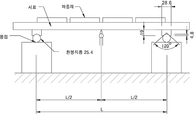 7.3.2 ÇÏÁß½ÃÇè : ½ÃÇèÆí¿¡ ÇÏÁß¹°ÀÇ ºÎ°¡ À§Ä¡´Â Ãø¸é ·¹ÀÏÀÇ ³»Ãø¸éÀ¸·Î ºÎÅÍ 13.0mmÀÌ»ó µÇ°Å³ª 25.0mm À̳»°¡ µÇµµ·Ï ÇÑ´Ù. ÇÏÁßÀç°¡ °¡·Î ¹æÇâÀ¸·Î ºê¸®Áö°¡ µÇÁö ¾Êµµ·Ï ½ÃÇèÆíÀÇ °¡·ÎÂÊÀ¸·Î ÇÏÁßÀç »çÀÌÀÇ °£°ÝÀÌ 10.0mm ¶³¾îÁöµµ·Ï ¼³Ä¡Çϸç, ÀÌ ¶§ ÇÏÁßÀç´Â ¹ÛÀ¸·Î Æ¢¾î³ª¿ÈÀÌ ¾øÀÌ ½ÃÇè °£°Ý ³»¿¡¼ À§Ä¡Çϵµ·Ï ¹èÄ¡ÇÑ´Ù.
